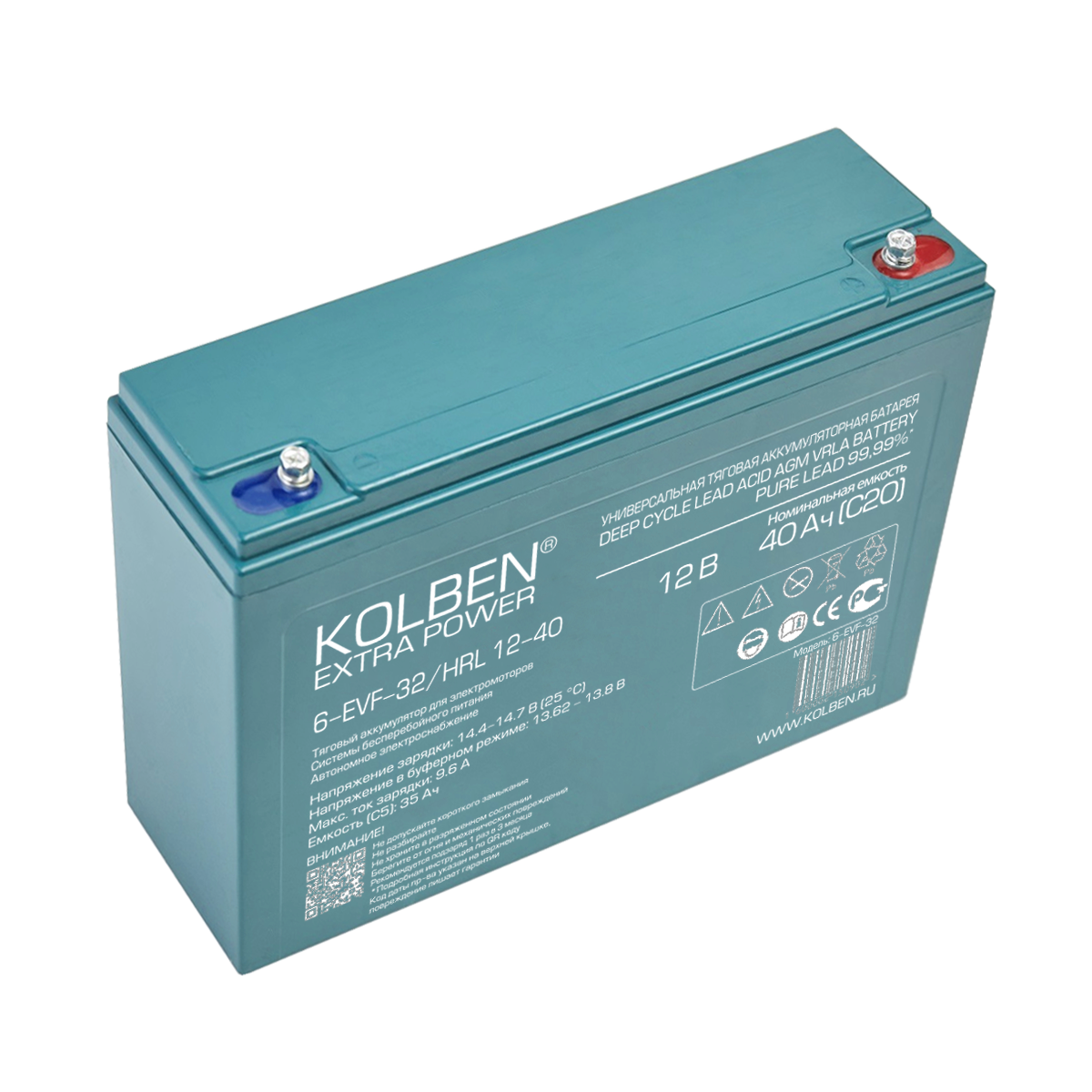6-EVF-32 Универсальный тяговый аккумулятор KOLBEN EXTRA POWER 12В 40Ач C20 266х76х170 мм