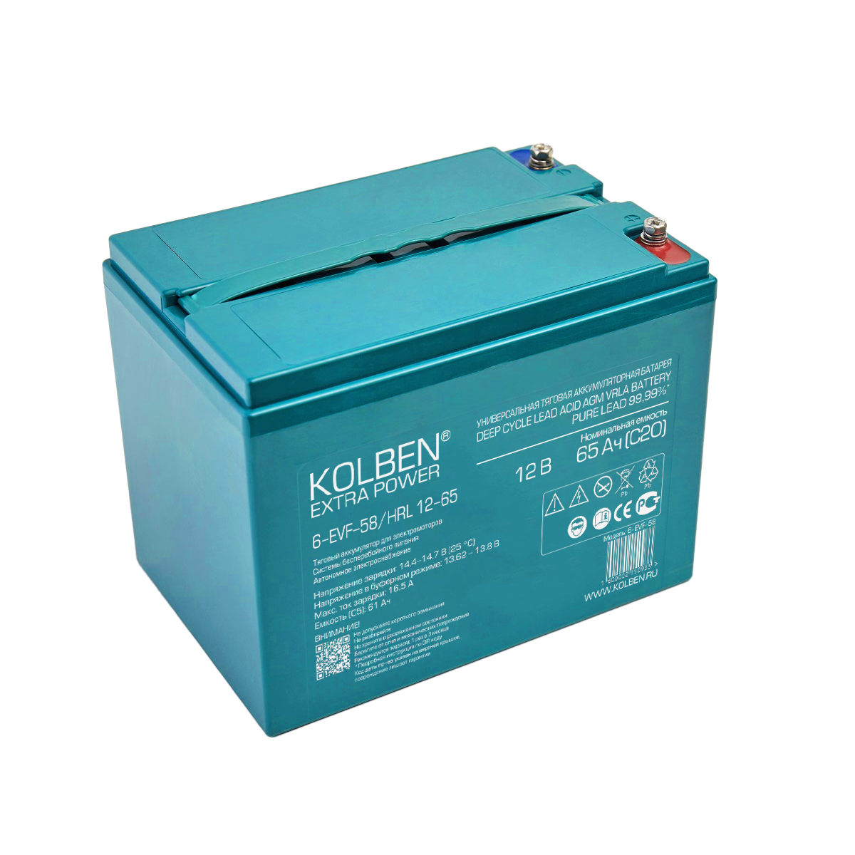 6-EVF-58 Универсальный тяговый аккумулятор KOLBEN EXTRA POWER 12В 65Ач C20 230x150x185 мм прямая(+-)