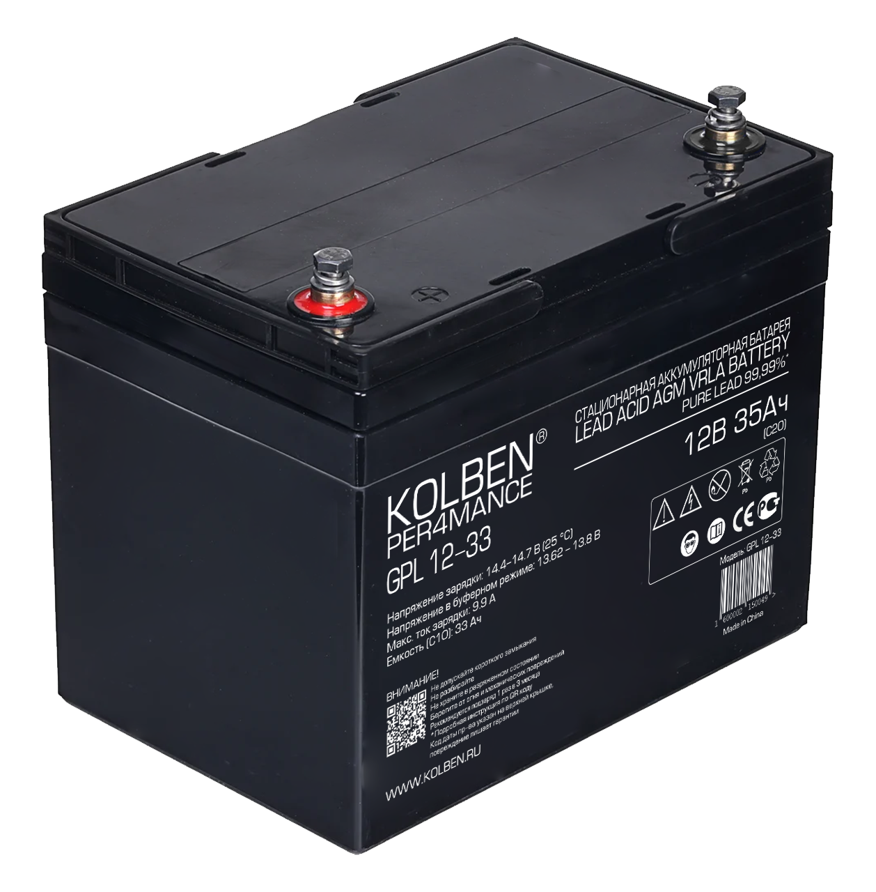 Аккумулятор KOLBEN PER4MANCE GPL 12-33 12В 33Ач 195x130x159 мм